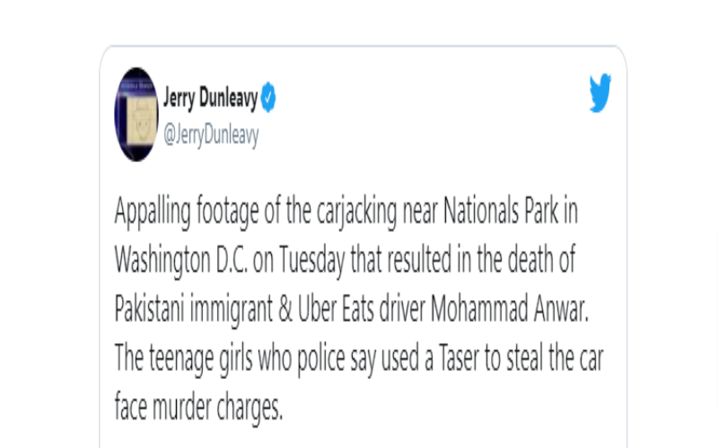 Appalling footage of the carjacking near Nationals Park in Washington D.C. on Tuesday that resulted in the death of Pakistani immigrant & Uber Eats driver Mohammad Anwar. The teenage girls who police say used a Taser to steal the car face murder charges.https://t.co/mOPnrLBf0t