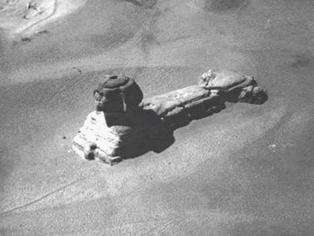 There have been sketches of the Giza (the word Gisa in Ancient Egyptian means ‘Hewn Stone’) complex from as far back as 1665 and some do show two heads peering out of the sands, one usually having female features.