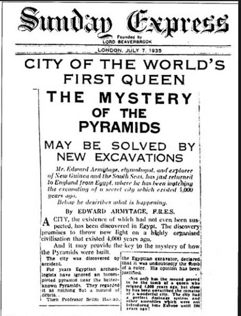 | The unearthing of a lost city in Egypt was reported in many papers in 1935, including this report in the Sunday Express on 7 July, 1935 (public domain) |