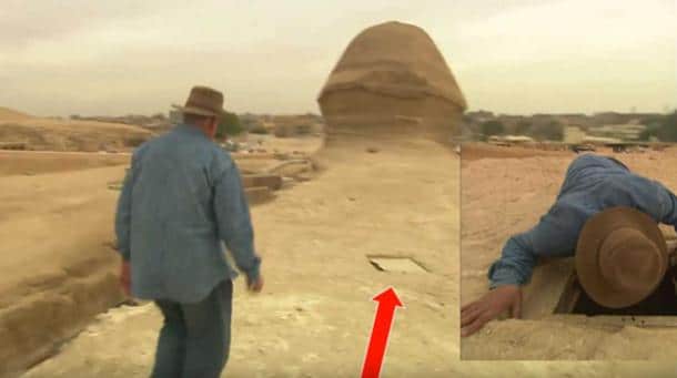 However, such a temperament doesn’t duly explain why Zahi Hawass has so publicly announced that there is nothing at all below the Sphinx, neither any tunnel nor a single chamber, when there have many photos of him entering descending shafts from the head of the Sphinx and another at the far rear of the Lion Body. Are we supposed to forget completely what we have seen several times in the past and accept such denials without question?