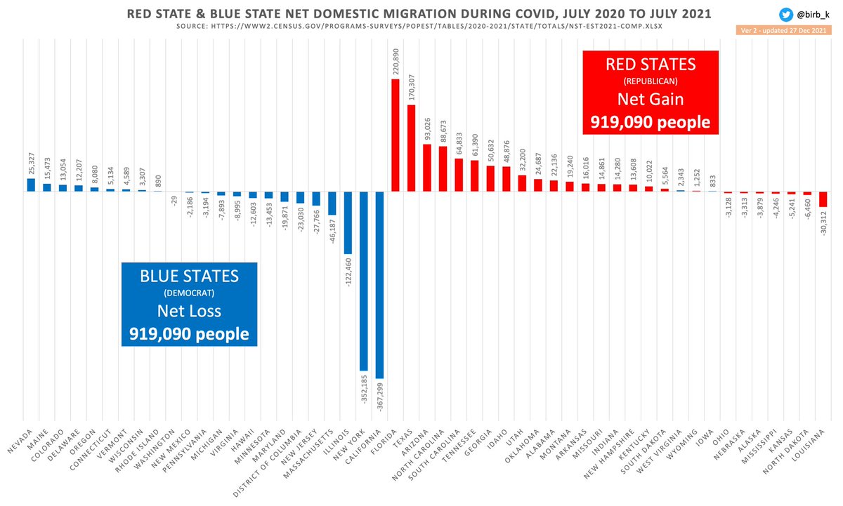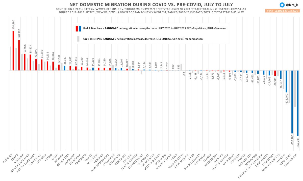 Chart 6/10. Digging back in time, this chart adds average annual migrations from 1995-2000. The migration trend from blue states to red states was evident even back then, but again Covid & Covid policies appear to have accelerated movement at a statistically significant scale.