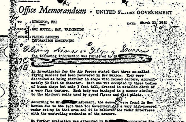 The Most Popular FBI Document Is This UFO Memo