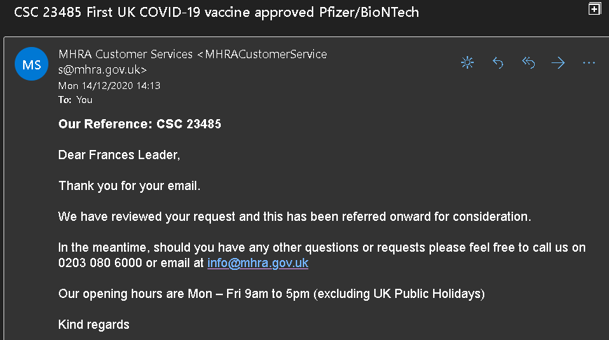 What you’re about to read is an alleged email exchange between the user francesleader on Hive, posted here, and the UK’s Medicines and Healthcare products Regulatory Agency MHRA.