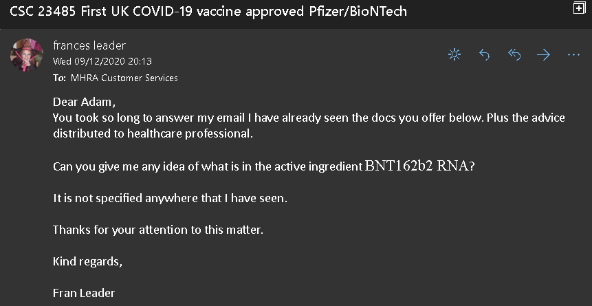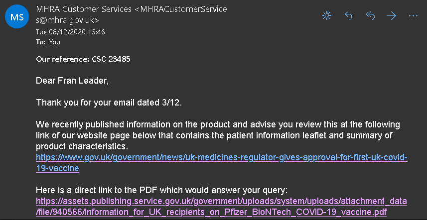 What you’re about to read is an alleged email exchange between the user francesleader on Hive, posted here, and the UK’s Medicines and Healthcare products Regulatory Agency MHRA.
