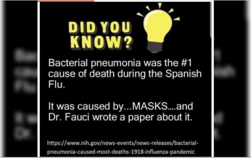 The claim: A study co-authored by Dr. Anthony Fauci found Spanish flu victims died from pneumonia caused by mask-wearing.