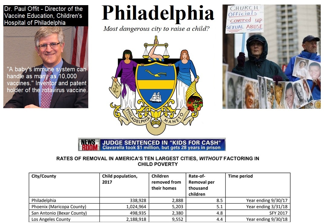 However, based on public statistics compiled by the National Coalition for Child Protection Reform (NCCPR), Philadelphia has now overtaken Phoenix as the top city in the U.S. having the highest percentage of the children being removed from homes and put into foster care.