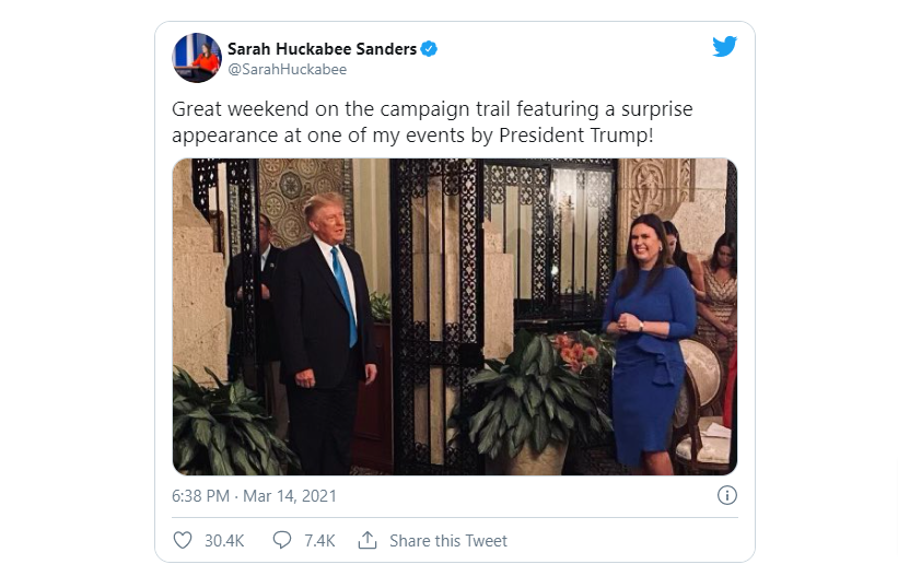 — Sarah Huckabee Sanders (@SarahHuckabee) March 15, 2021
