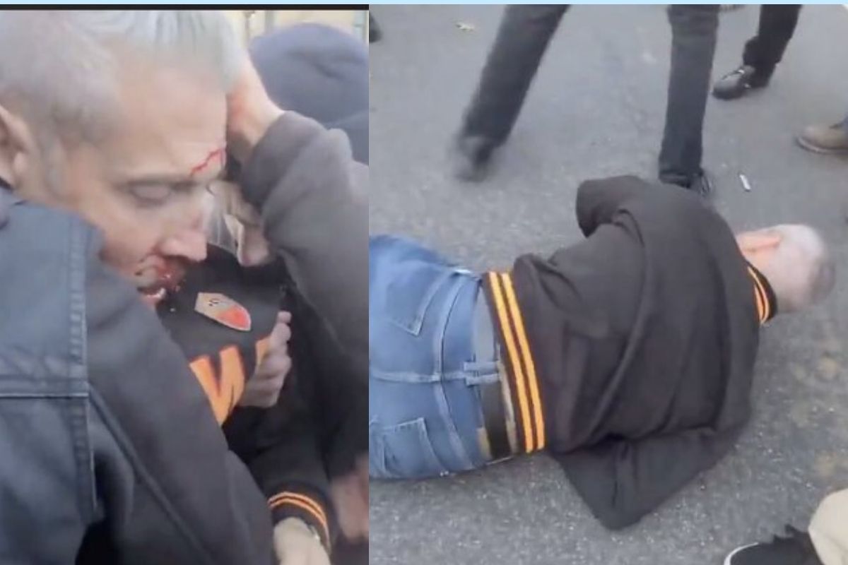 After one coward hit the man from behind and knocked him down another came up and kicked him in the face.