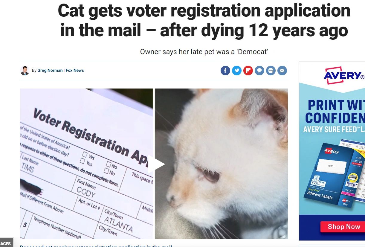 Remember when Cody the Cat got a Voter Registration in the mail?