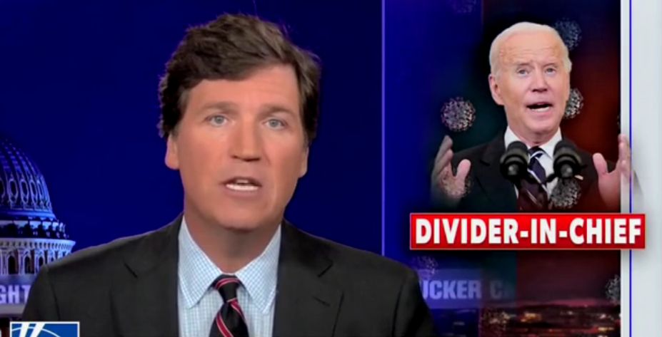 “Biden noted this to the morbidly obese governor of Illinois, who nodded from behind his mask as if all of this was settled science. And then Joe Biden kept going,” Tucker added. “The unvaccinated are dangerous, he announced, they are diseased, dirty, unpatriotic, they are selfish, they are pathogens in human form. They have caused this deadly virus to ‘spread to our children,’ to spread throughout society. They suffered because of their absurdity, and their self-inflicted suffering burdens the rest of us. They ‘overcrowd our hospitals’ like a plague of swarming gasping insects. As they lie there ventilated, dying, reaping the rewards of their own sins, these miscreants ‘leave no room for someone with a heart attack or in need of a cancer operation’.”