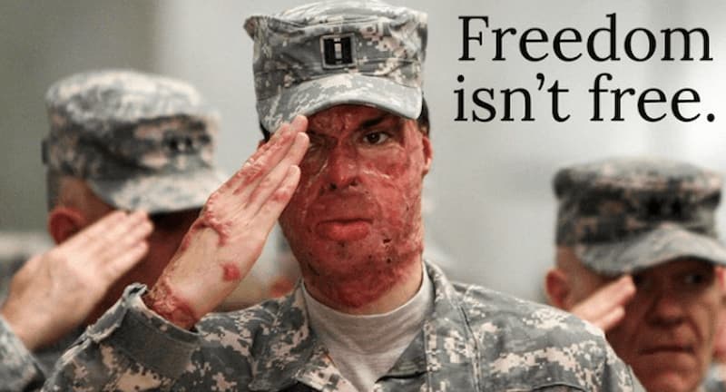 His picture, showing the brutal wounds he incurred while serving in the middle east, was a breath-taking reminder for all Americans who celebrated with cook-outs and fireworks, that the freedom they enjoyed was fought for by strangers, often with an unimaginable pricetag.