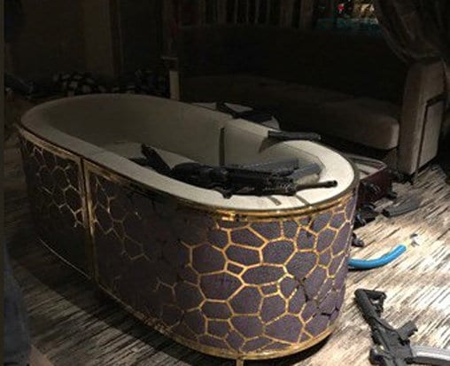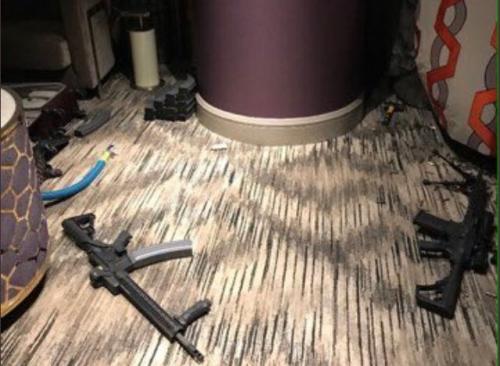 | Stephen Paddock’s room was packed with 23 guns and lots of ammo. |