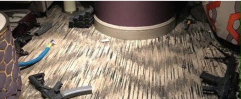 | Stephen Paddock’s room was packed with 23 guns and lots of ammo. |