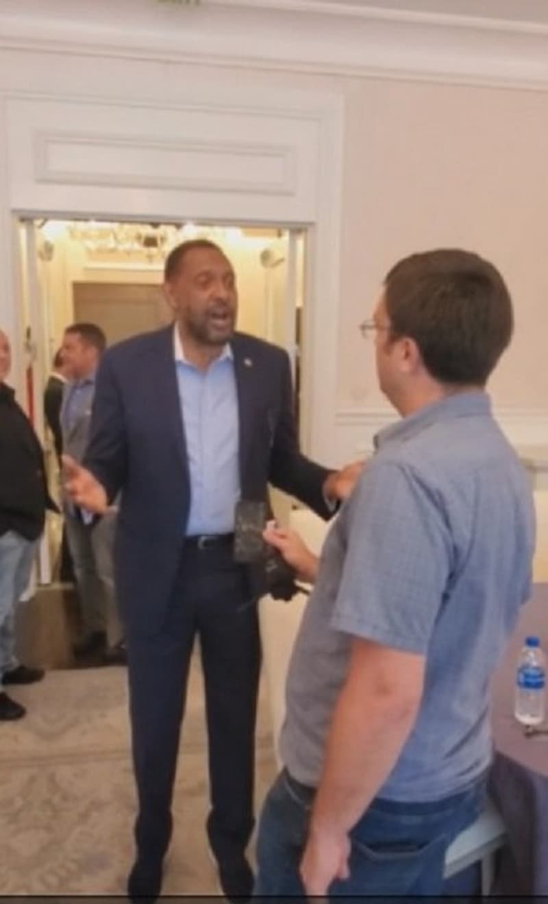 Let’s put the camera on him. Let’s put the camera on him. (puts his arm around reporter) Now was the drop off boxes used? (silence) Who or what press are you with? He’s with CNN. Were the drop off boxes that were used in our election, this gentleman is with CNN. He’s with CNN. What’s your name? This is Mr. Sayers. Were the drop off boxes used in the 2020 election and the 2021 runnoff? Were the drop off boxes written into the state statute? Are you open to looking to see if they were? (mumbling from reporter) No, I’m just asking you a question. You’ve asked me questions already, was it, are you going to look into it?