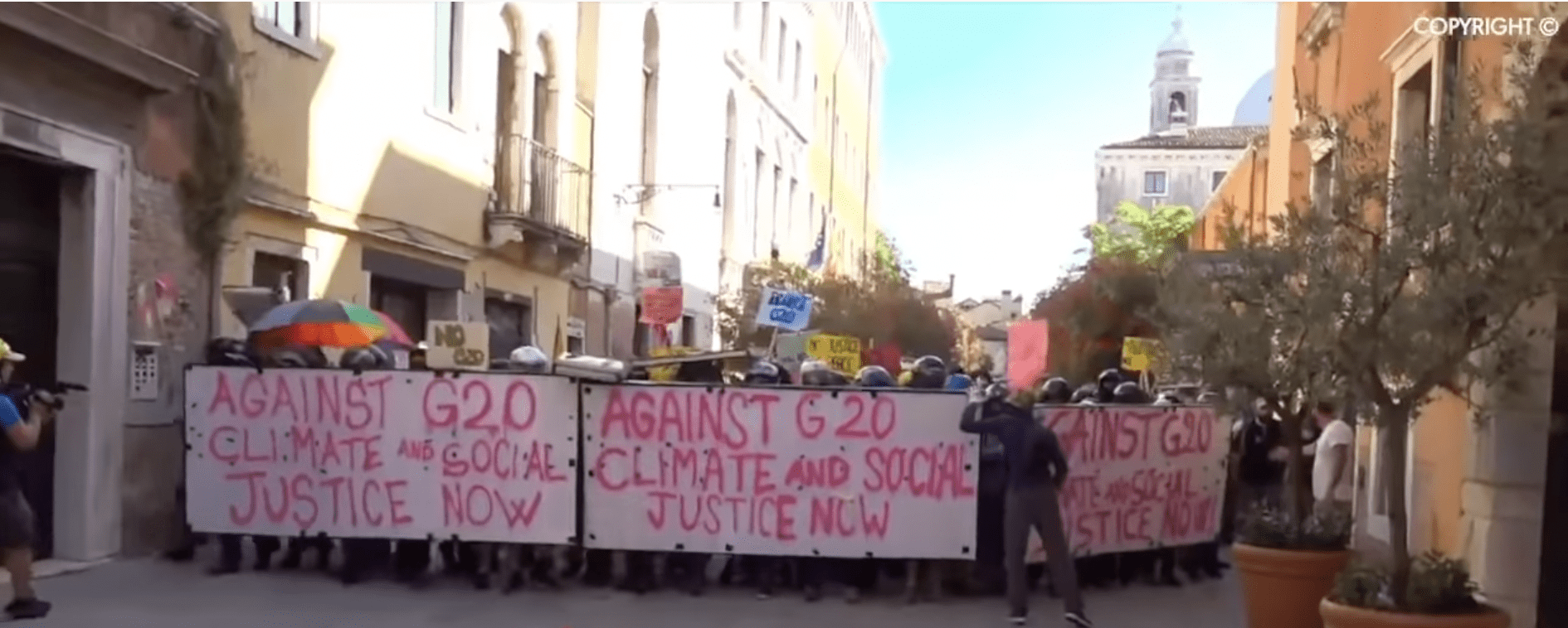 The signs say “Against G20….” And if that’s the case, I doubt it’s antifa the police are fighting.