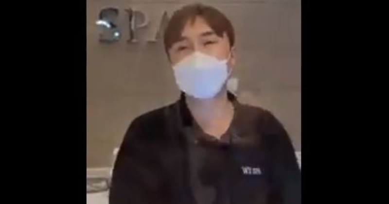 A video clip shows the woman approaching reception staff and telling them, “I just wanna be clear with you – it’s OK for a man to go into the women’s section, show his penis around other women, young little girls underage – your spa Wi Spa condones that – is that what you’re saying?”