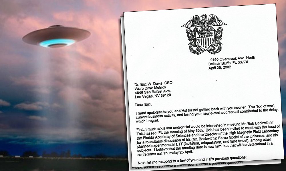 The document goes into detail about a meeting that was had between Dr. Eric Davis, and Vice Admiral Thomas Ray Wilson. Who is Eric Davis? He is a very well known scientist, and quite the legend. For many years he was a member of the National Institute for Discovery Sciences (NIDS)(Owned by Robert Bigelow), the Chief Science Officer of EarthTech Int’l, Inc. and the Institute for Advanced Studies at Austin in Austin, Texas; and he is the Owner/Chief Executive/Chief Scientist of Warp Drive Metrics who consults and contracts for the Department of Defense. He is also an Adjunct Professor in the Early Universe, Cosmology and Strings Group at the Center for Astrophysics, Space Physics & Engineering Research at Baylor University in Waco, TX.