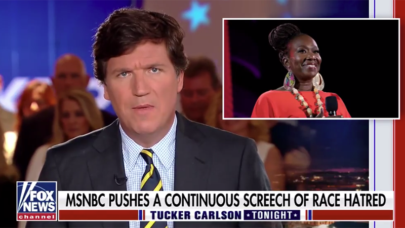 “So, that is a currently employed MSNBC anchor, another Harvard graduate, not an employee of a Radio Rwanda,” Carlson urged.