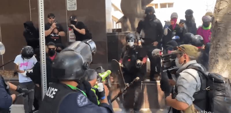 Part 2 of the ongoing WiSpa saga became considerably more violent over the weekend, when Antifa clashed with police, throwing projectiles at them, confident that they’d never face consequences because they rarely do.