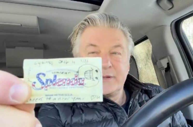 He proudly held up a packet of Splenda sweetener, on which a fan had written a message of support.
