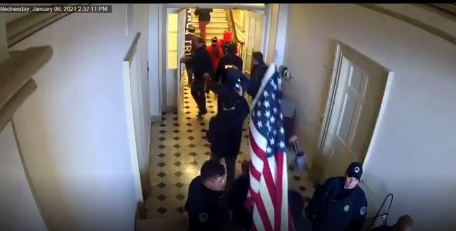More footage from the Capitol riots throws further doubt on the mainstream media’s narrative that the unarmed protesters entering the Capitol building on January 6th constituted a violent “insurrection.”