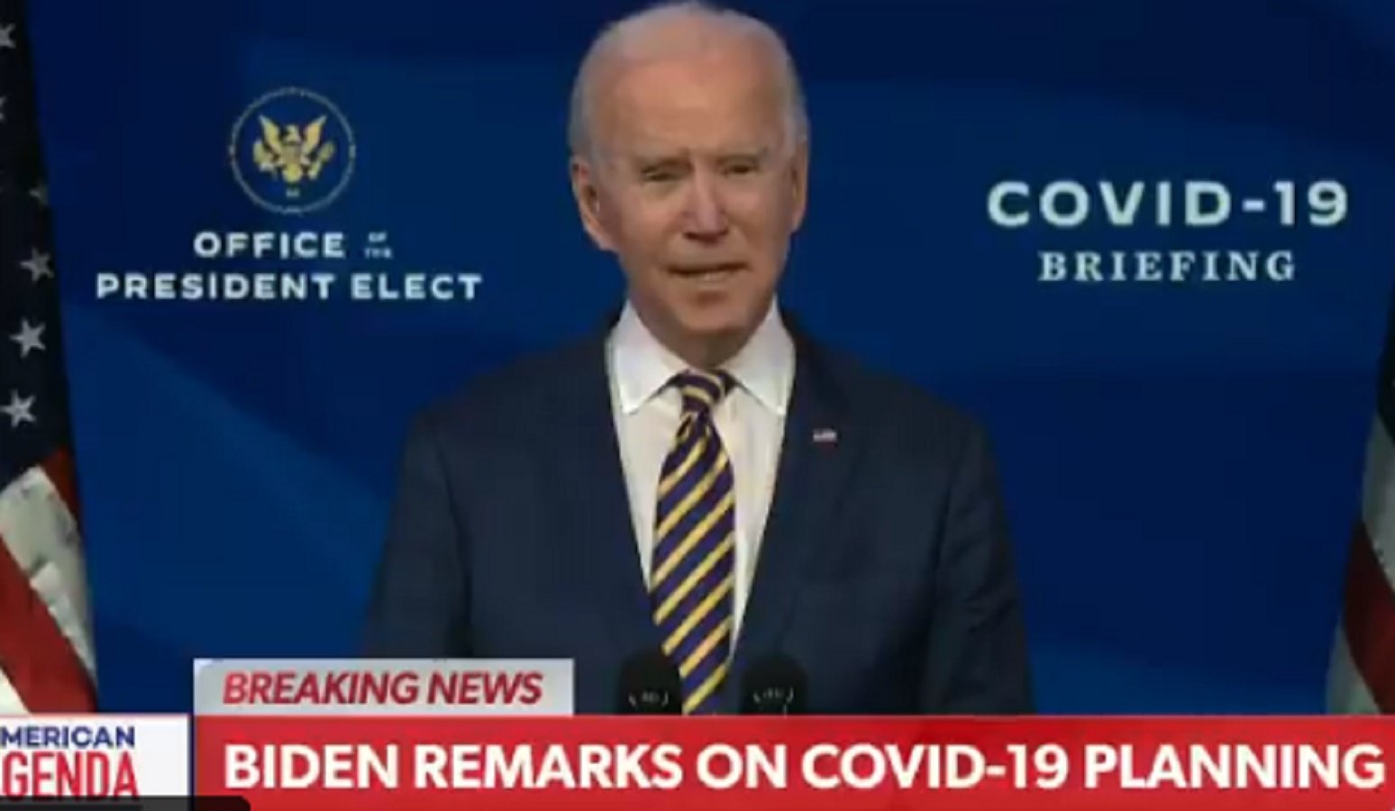 During a COVID-19 briefing on Tuesday, Biden asserted that “President-elect Harris” took the COVID-19 vaccine to “instill public confidence.”