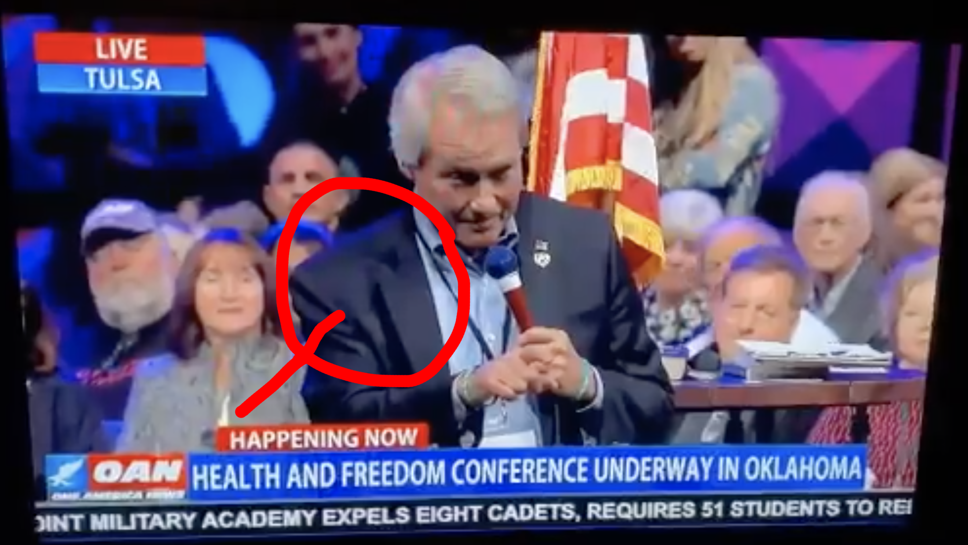 (Will Justice) During the Health and Freedom Conference yesterday in Tulsa Oklahoma, Lin Wood made an air Q sign that earned him a standing ovation. Wood also said Trump won the 2020 election and he was still president.