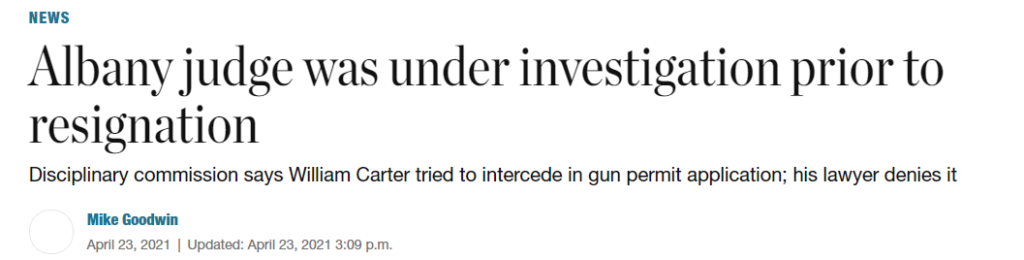 When he resigned from office last month, Albany County Judge William Carter was under investigation for allegedly trying to have a friend’s application for a pistol permit assigned to him, according to the state Commission on Judicial Conduct.