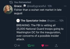 Most recently, a narrative has emerged that there are fears that “Trump-supporting” National Guard members might be planning to cause violence:
