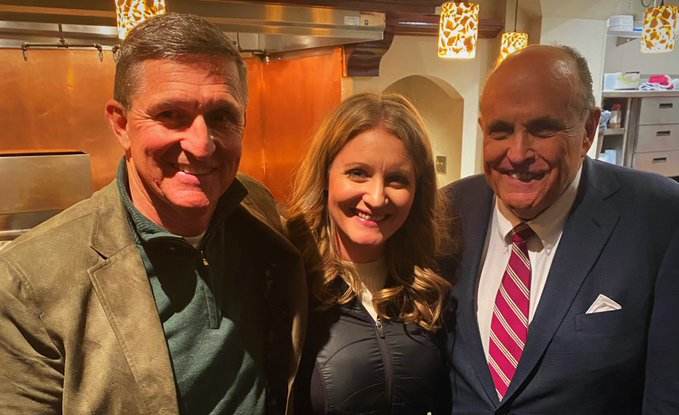 Why Are These People Smiling? Trump Attorney Jenna Ellis Posts Late Night Photo with Rudy Giuliani and Gen. Flynn