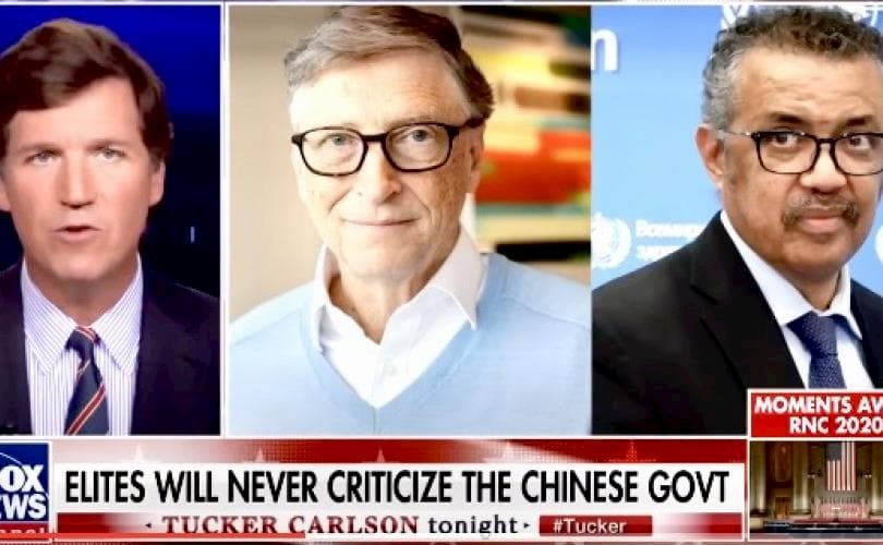 Carlson objected to Tedros’ and Gates’ silence over the fact that China is responsible for both the Wuhan coronavirus and massive amounts of carbon emissions, scoffing that neither man would ever “meaningfully criticize the Chinese government.” The Fox News host believes that both men think of climate change and the pandemic as “useful pretexts for mass social control.”