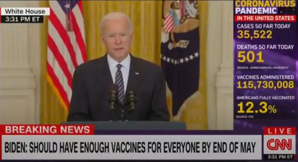 “Now, President Harris and I took a virtual tour of a vaccine center in Arizona, not long ago” Biden said. “One of the nurses on that, on that tour, injecting people, giving vaccinations, said that each shot is like administering a dose of hope.”